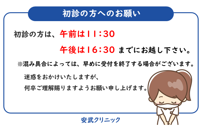 2)ご来院の際は不織布マスクの着用をお願いいたします。